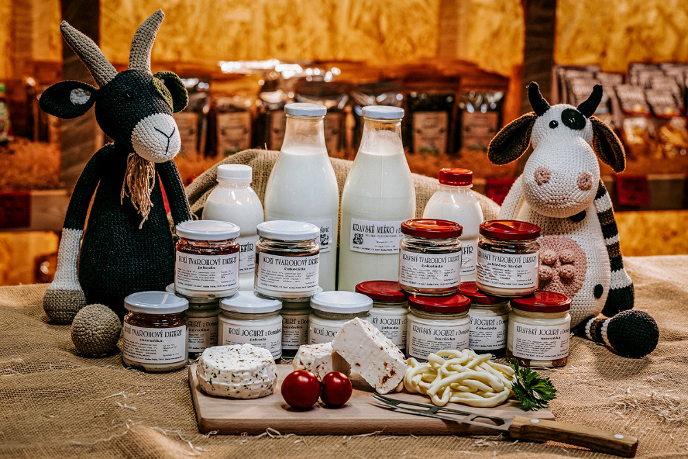 Ze statku u Petříků - čerstvé kravské a kozí mléko, jogurty, tvaroh, nitě, zákys. Ovčí mléčné výrobky ze Slovenka - jogurty, žinčica, bryndza, nitě, oštiepok, ...