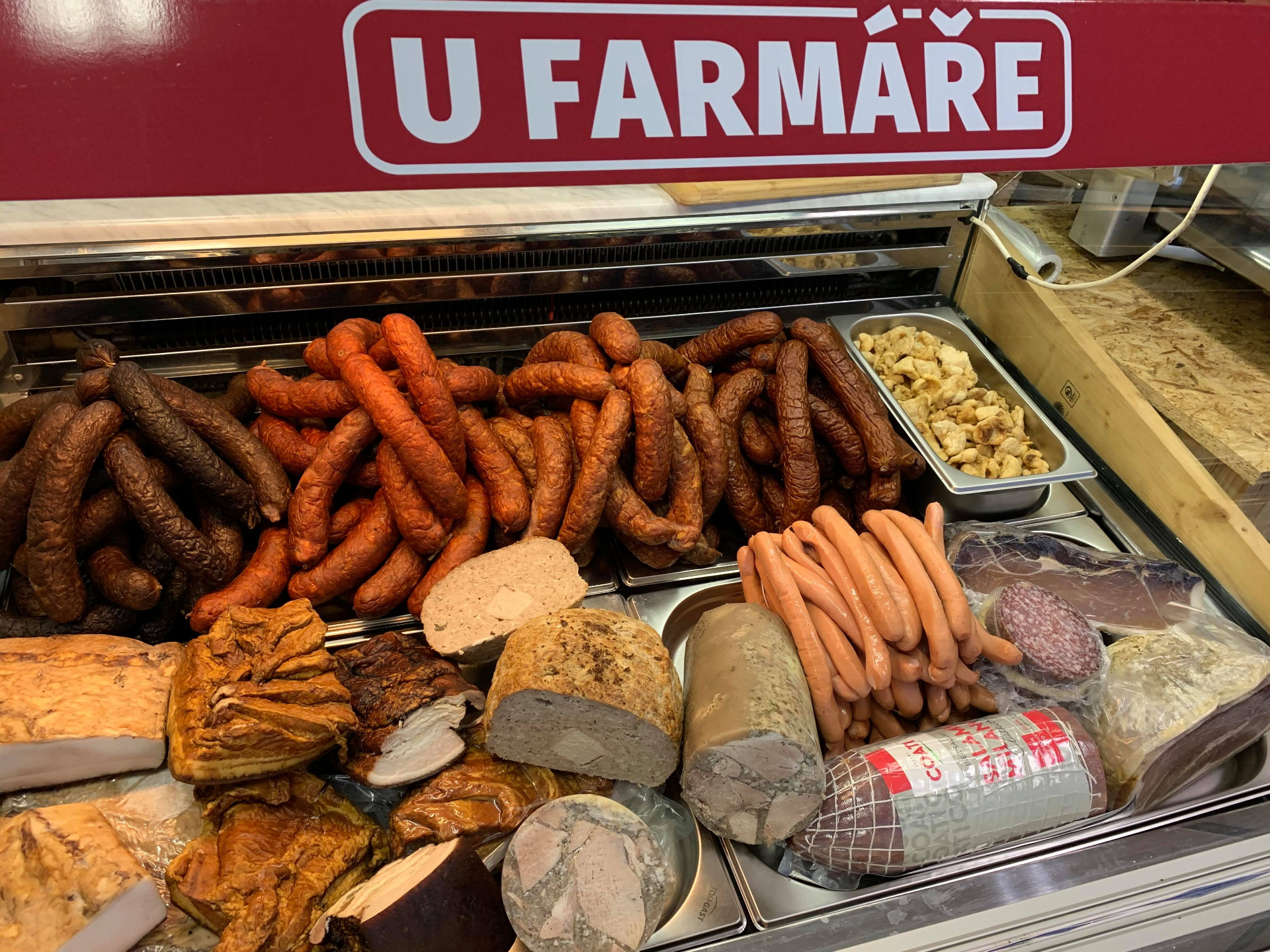 - klobásy, sekaná, tlačenka, uzený bok speciál, uzený špek, paštika, jelitový prejt, sádlo, škvarky, ...